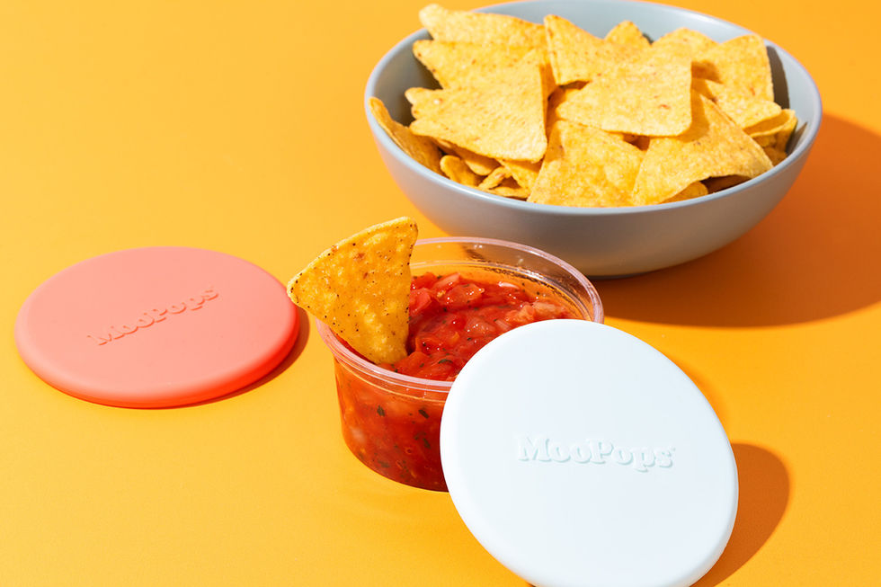 Two reusable tops made from food grade silicone, our Dip and Spread Tops are airtight, leakproof and designed to fit standard sized pots with a 10cm diameter, including 145g, 170g, 200g and 230g pots. Dishwasher and fridge safe. BPA free.